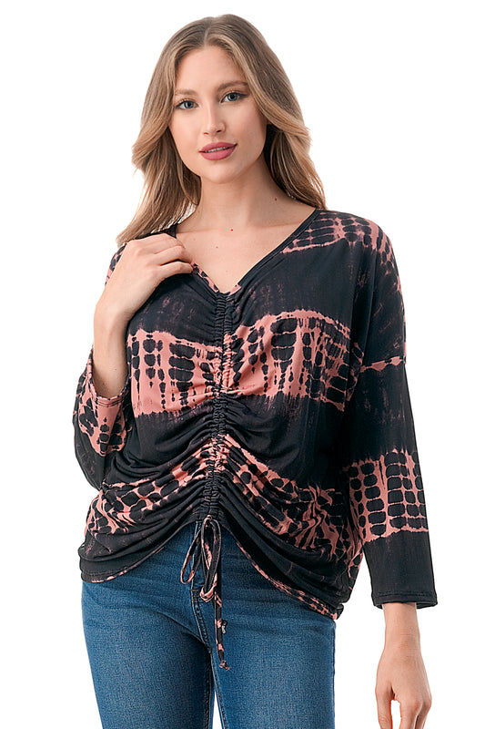 ACACIA CENTER DRAW SHIRRING TOP (BLACK RUST TIE DYE)- VT3006Regular price $64.00 USDRegular priceUnit price / per-
