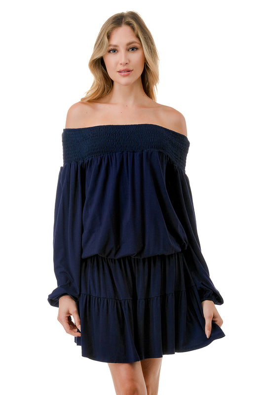MARGO OFF SHOULDER DRESS (NAVY)- VD2813