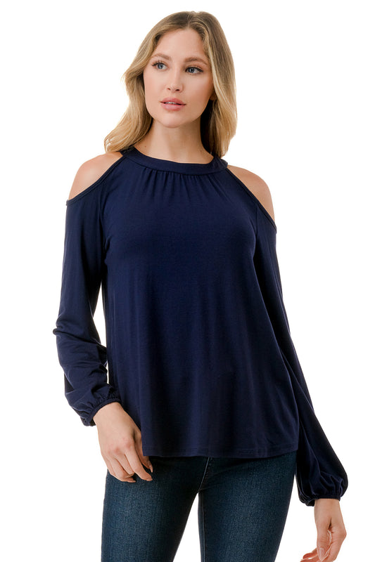 MICHELLE COLD SHOULDER TOP (NAVY)-VT2609