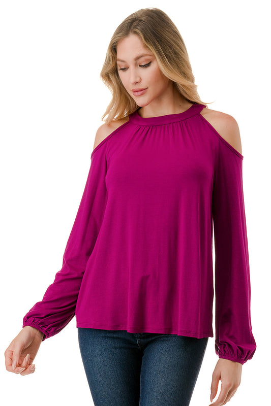 MICHELLE COLD SHOULDER TOP (MAGENTA)-VT2609