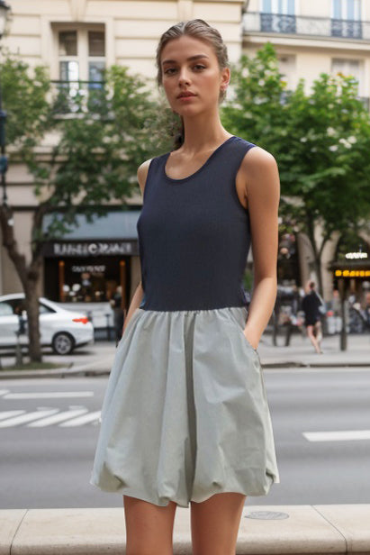 MIMI BUBBLE TANK DRESS (NAVY RIB / DENIM)- VD3328