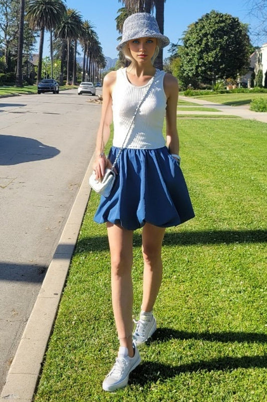 MIMI BUBBLE TANK DRESS (WHITE RIB / INDIGO) - VD3328