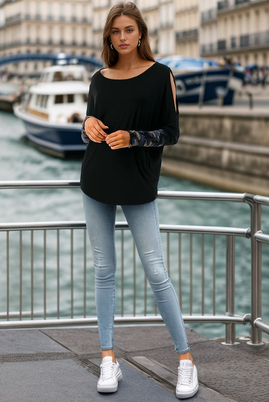 MILLIE SMOKING CUFFS TOP (BLACK / BLUE CAMO)- VT3041