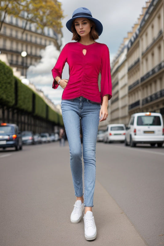 ANAIS FRONT KEYHOLE TOP (WINE)-VT3356