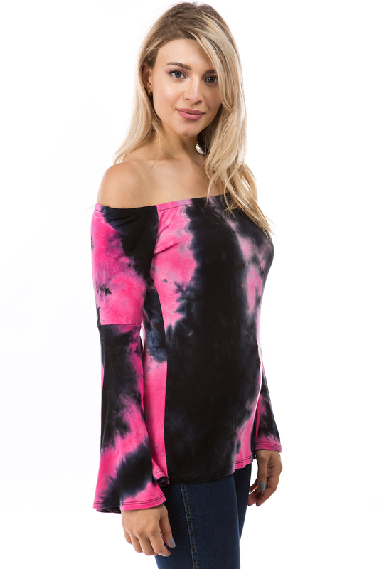 AMY OFF SHOULDER TOP (FUSCHIA TIE DYE)- VT2492T