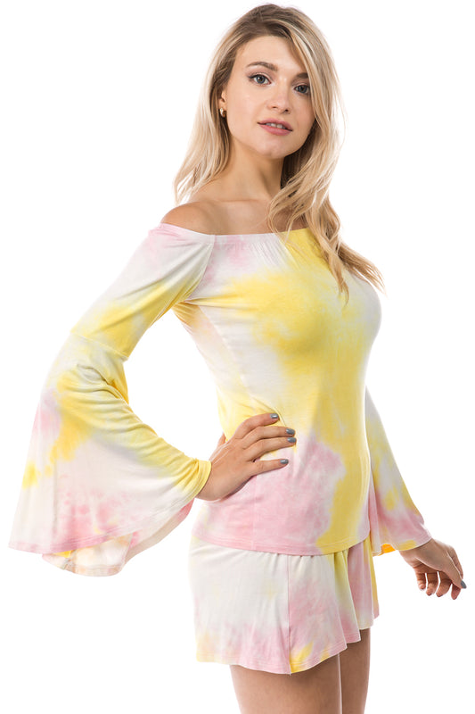 AMY OFF SHOULDER TOP (PINK/YELLOW TIE DYE)- VT2492T