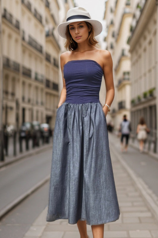 MIMI TUBE DRESS (NAVY / DENIM) - VD3330