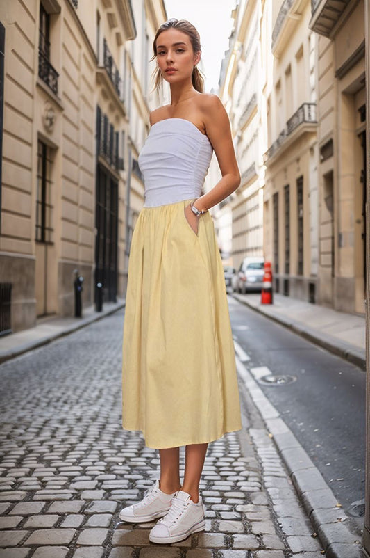 MIMI TUBE DRESS (WHITE / YELLOW) - VD3330