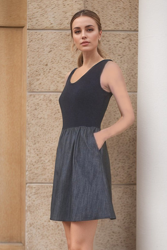 MIMI V NECK TANK DRESS (NAVY RIB / DENIM)- VD3416