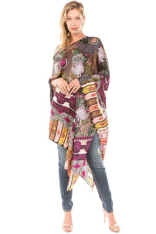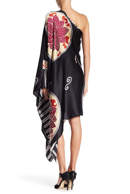 PONCHO SILK DRESS (Black Multi)- VD1642