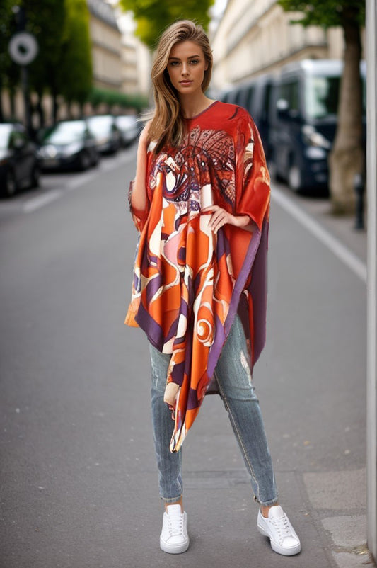 PONCHO SILK DRESS (RED PEACOCK)- VD1642