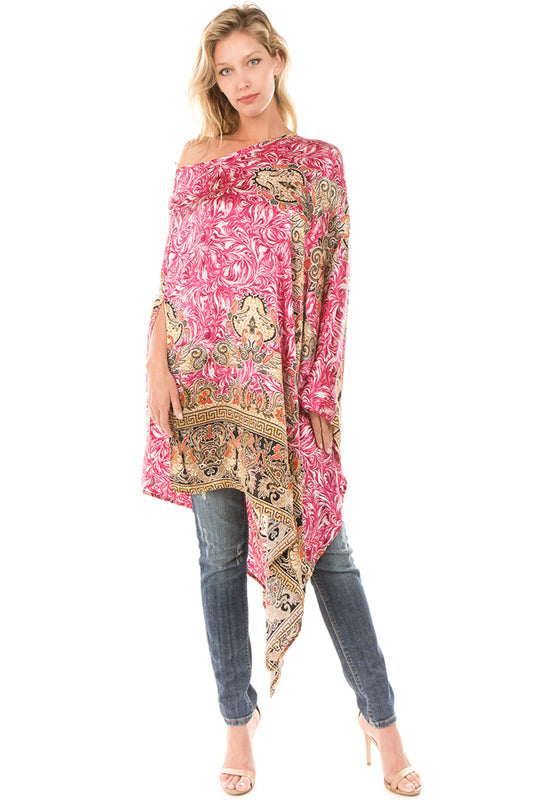 PONCHO SILK DRESS (Fuschia)- VD1642