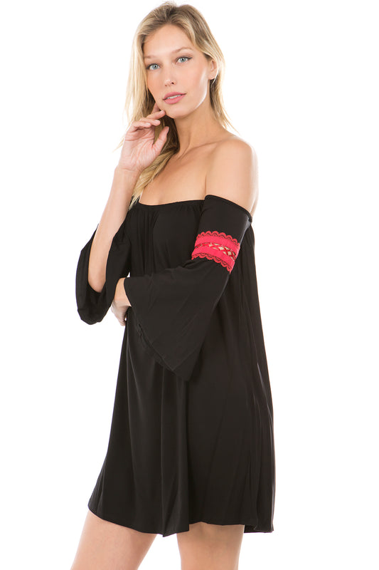 ROCCO COLD SHOULDER BISHOP SLEEVE DRESS (Black Multi) - VD2613