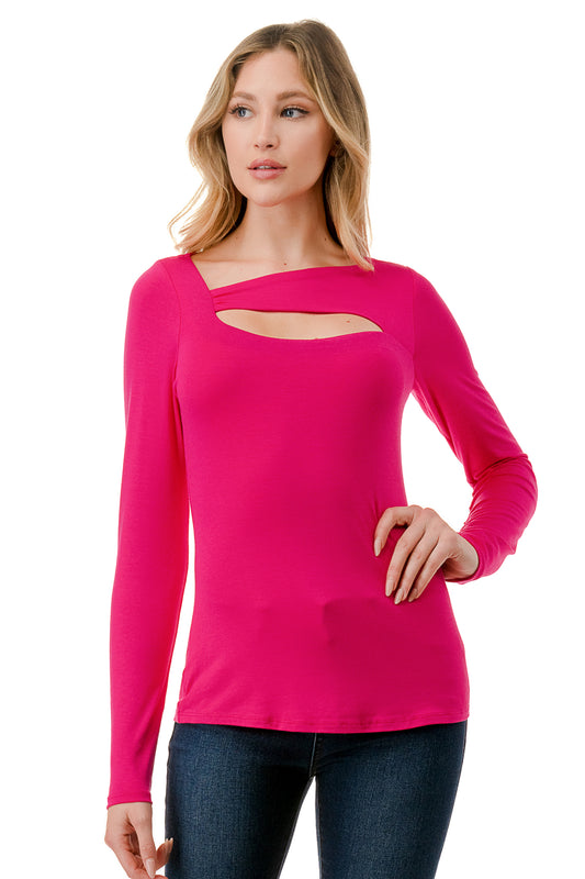 ROCIO SPLIT YOKE TOP (HOT PINK)-VT2595
