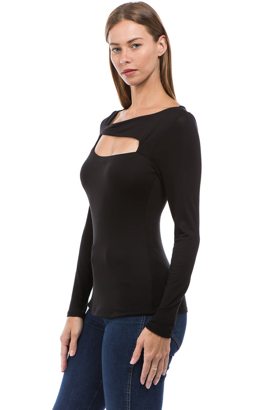 ROCIO SPLIT YOKE TOP (BLACK)-VT2595
