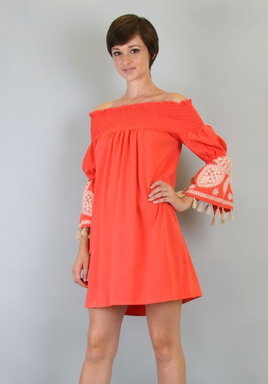 SELLY OFF SHOULDER DRESS (ORANGE)-CVD6419