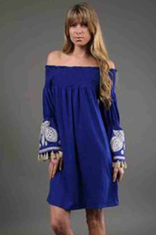 SELLY OFF SHOULDER DRESS (BLUE)-CVD6419
