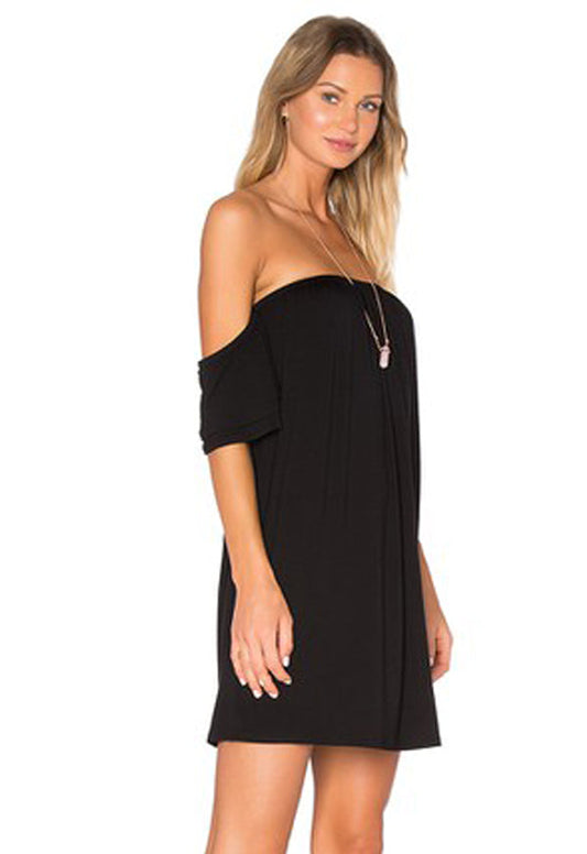 SOLID FABIOLA OFF SHOULDER DRESS (BLACK)- CVD1705S