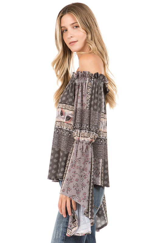 TALLULAH BELL SLEEVE TOP (Grey)- VT2274
