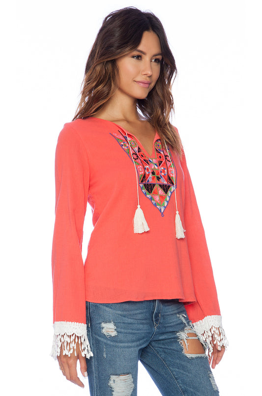 TERESA LONG SLEEVE TOP (CORAL)-CVT8993