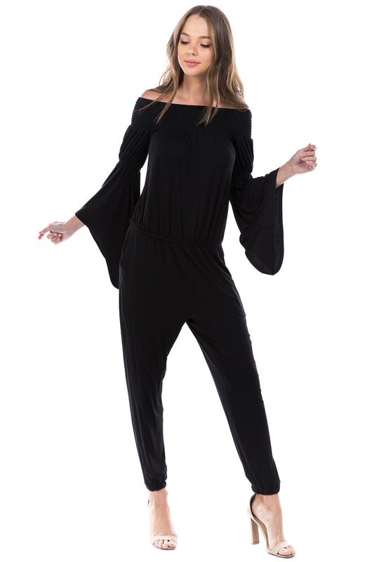 VERSAILLES BELL SLEEVE OFF SHOULDER JUMPSUIT (Black) - VD7510