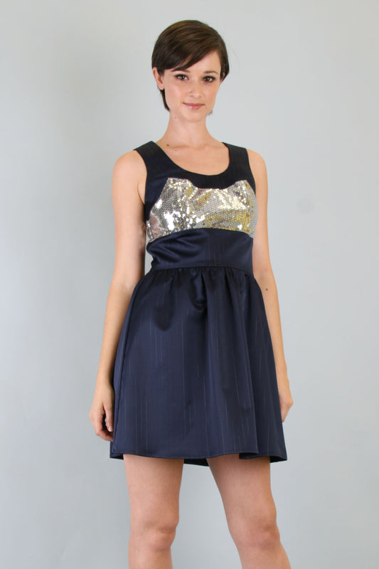 ZOE PIN BABYDOLL DRESS (NAVY)- VD7228