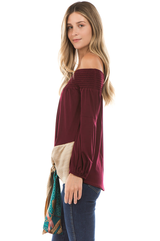 ZELDA OFF SHOULDER TOP (Wine)- VT2301