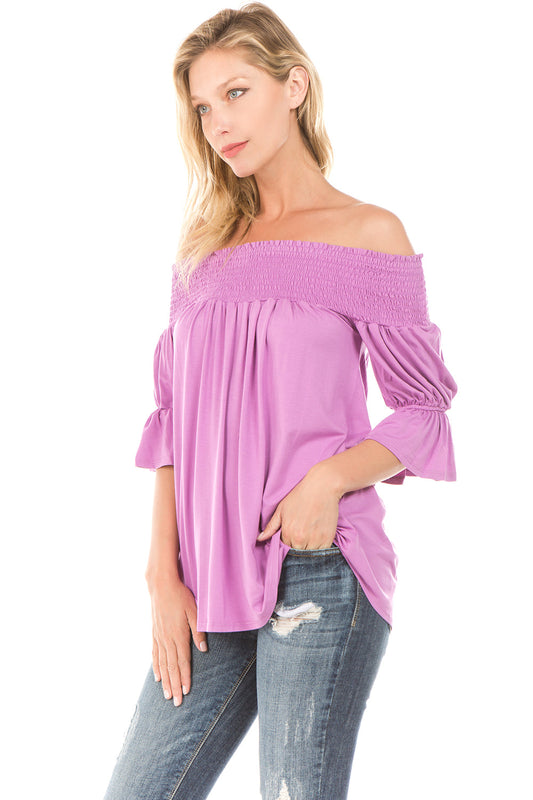 AUBREY OFF SHOULDER HALF SLEEVE TOP (L. VIOLET)- JT7101