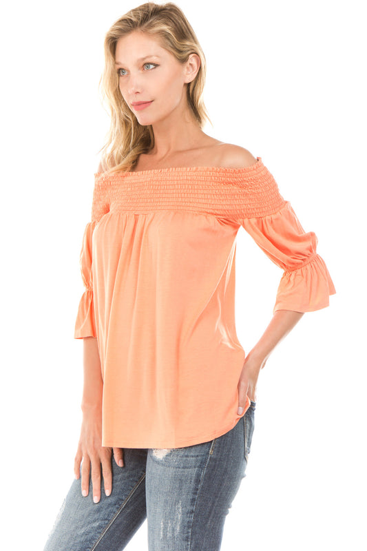 AUBREY OFF SHOULDER HALF SLEEVE TOP (MELON)- JT7101
