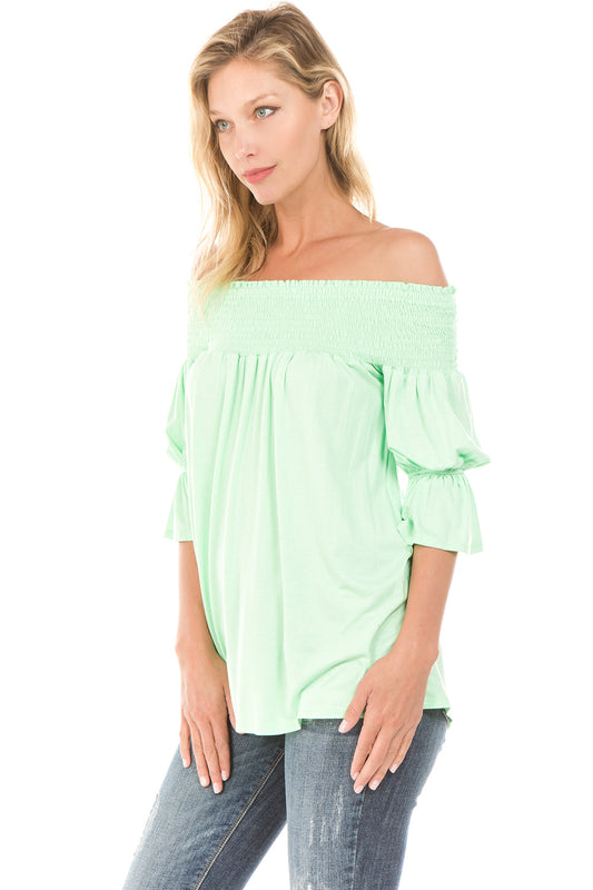 AUBREY OFF SHOULDER HALF SLEEVE TOP (MINT)- JT7101
