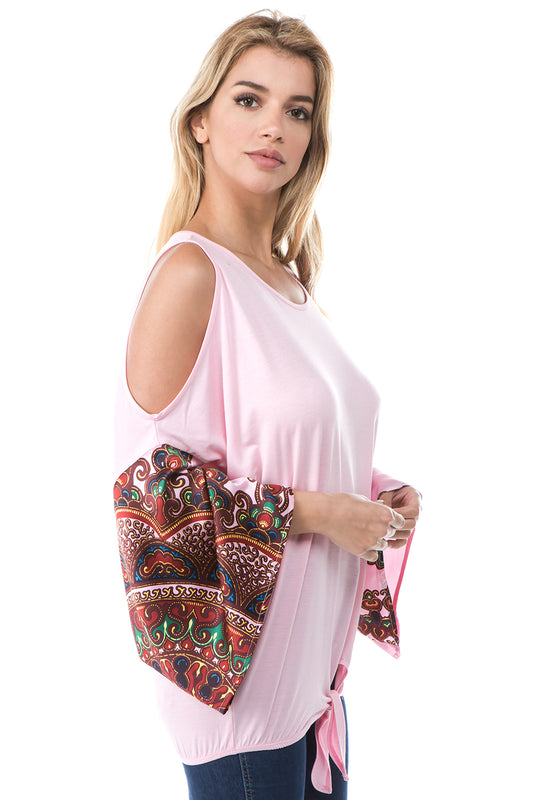 AVELINE COLD SHOULDER BLOUSON TOP (BABY PINK)-VT2656