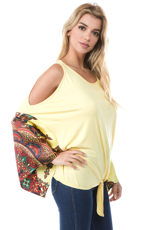 AVELINE COLD SHOULDER BLOUSON TOP (YELLOW)-VT2656
