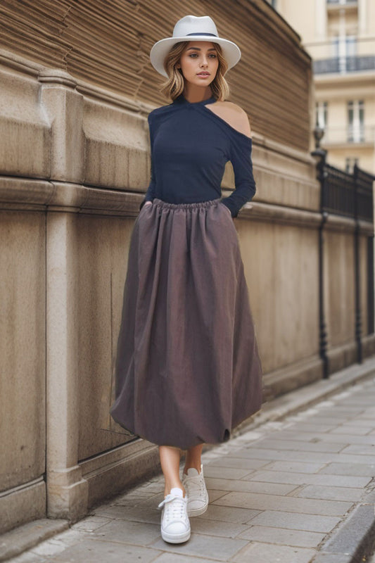 BETTY MIDI BUBBLE SKIRT (BROWN)- VS3373