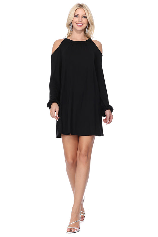 BETTE COLD SHOULDER BISHOP SLEEVE DRESS (Black) - VD2613