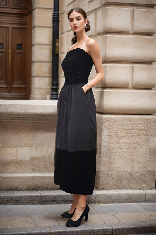 BRITTNEY COLOR BLOCK TUBE MID DRESS(BLK/CHARCOAL/BLK)-VD3434