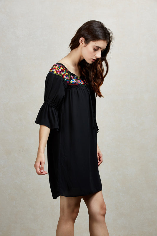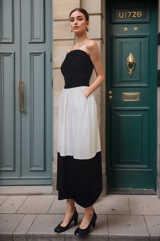 BRITTNEY COLOR BLOCK TUBE MID DRESS(BLK/TAUPE LINEN/BLK)-VD3434