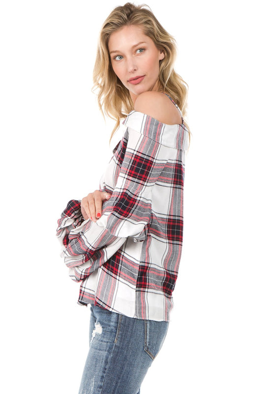 BUBBLY PLAID TOP (RED MULTI)-VT1856