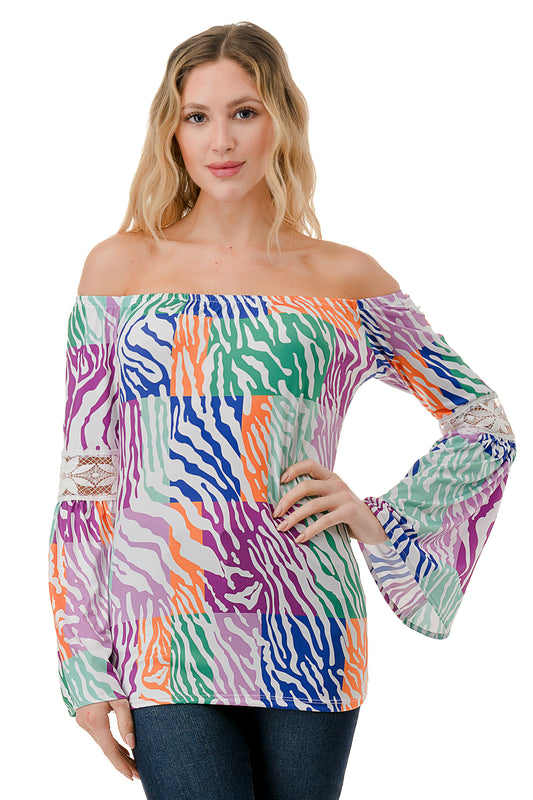 CLEO OFF SHOULDER TOP (MULTI ZEBRA)- VT2652
