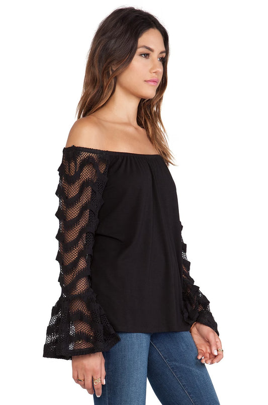 COLLEEN OFF SHOULDER TOP (BLACK)-VT9342