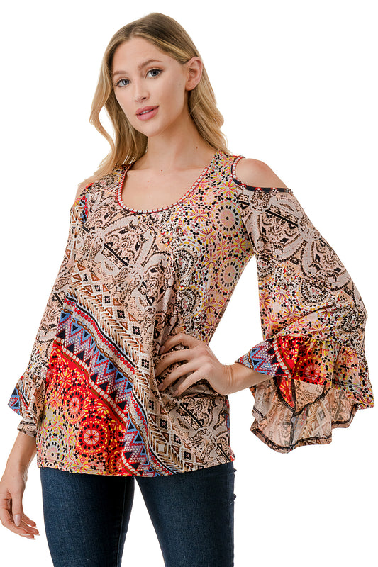 CONSTANCE OPEN SHOULDER TOP (RED MULTI)- VT2399
