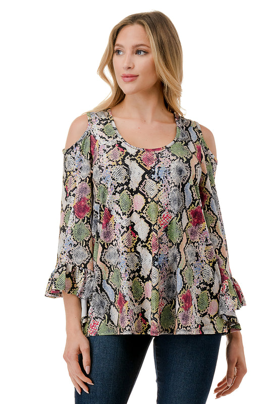 CONSTANCE OPEN SHOULDER TOP (MULTI SNAKE)- VT2399
