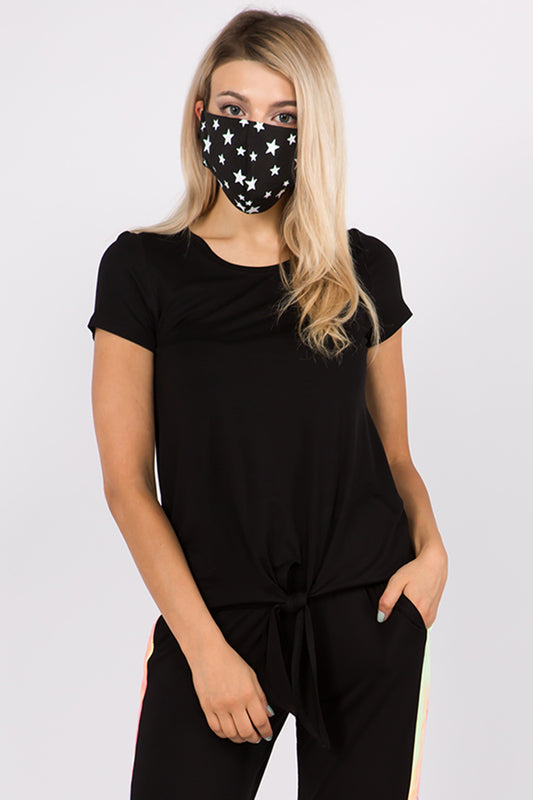 CORA FRONT TIE SHORT SLEEVE TOP (BLACK)- VT2755