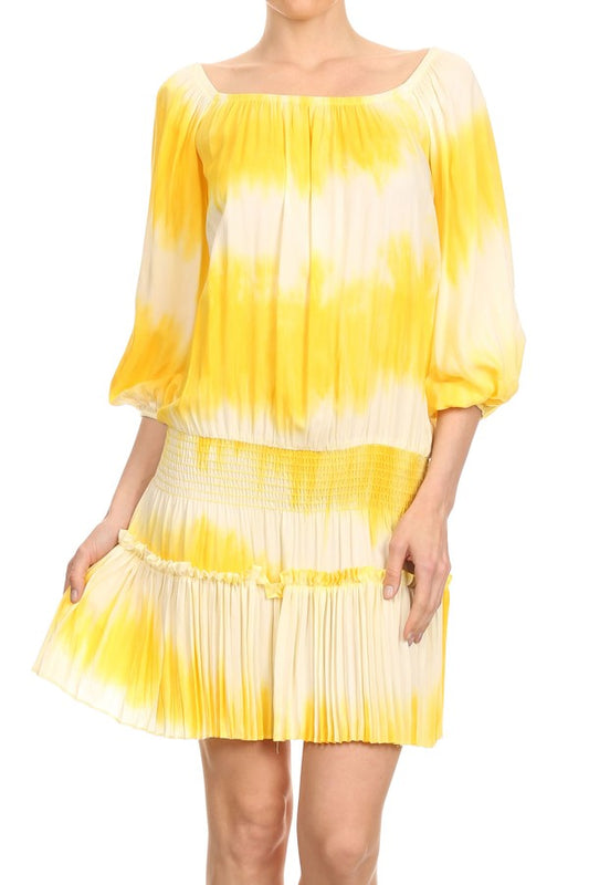 ELIYA OFF SHOULDER DRESS (YELLOW TIE DYE)- VD1264