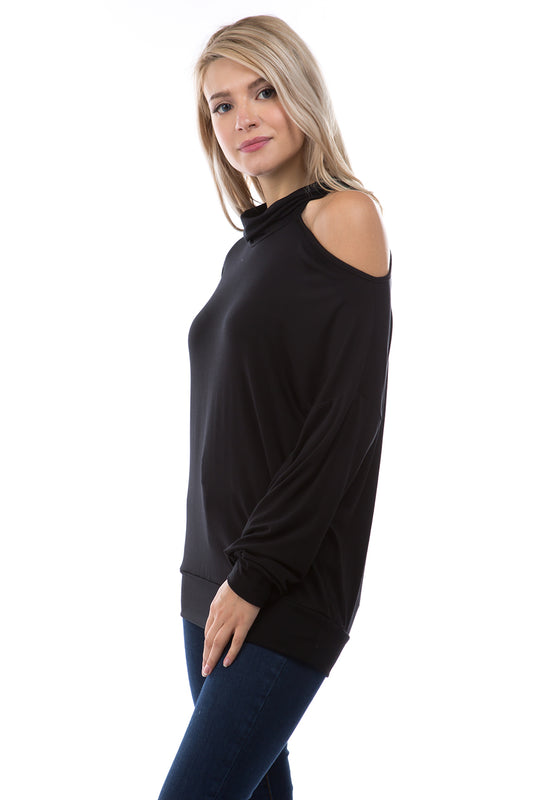 ELISE OPEN SHOULDER TURTLE NECK TOP (BLACK)-VT2842