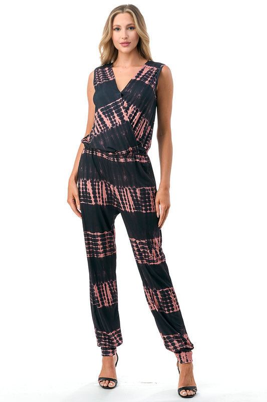EMBER SLEEVELESS JUMPSUITS (BLACK / RUST TIE DYE)- VD3067