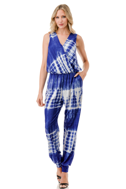 EMBER SLEEVELESS JUMPSUITS (BLUE TIE DYE)- VD3067