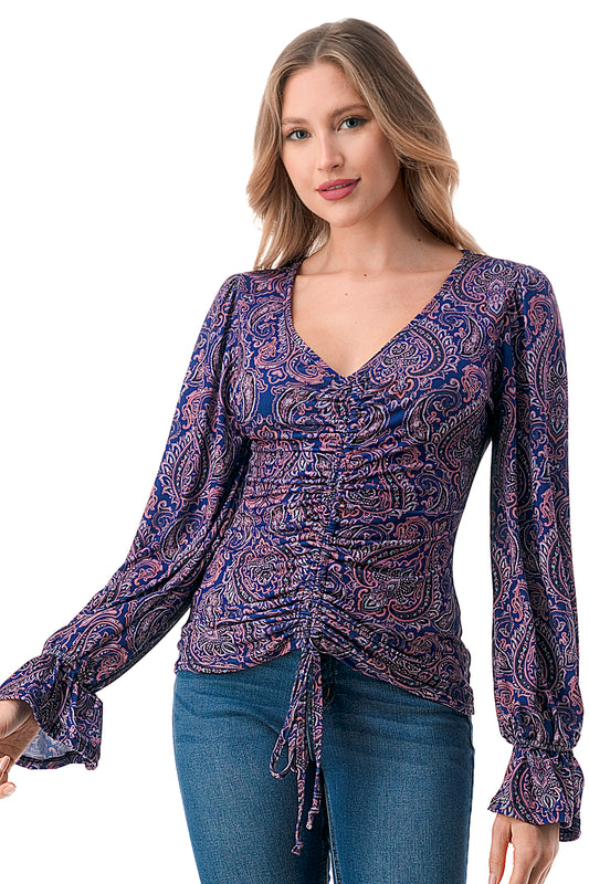 EMBER CENTER DRAW SHIRRING TOP (PURPLE PAISLEY)- VT3045J