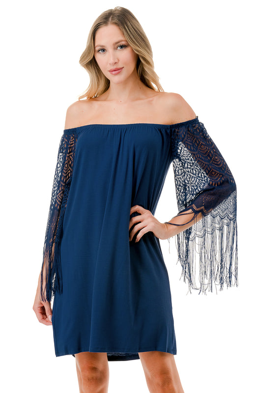 FARRAH OFF SHOULDER DRESS (NAVY)- VD9215