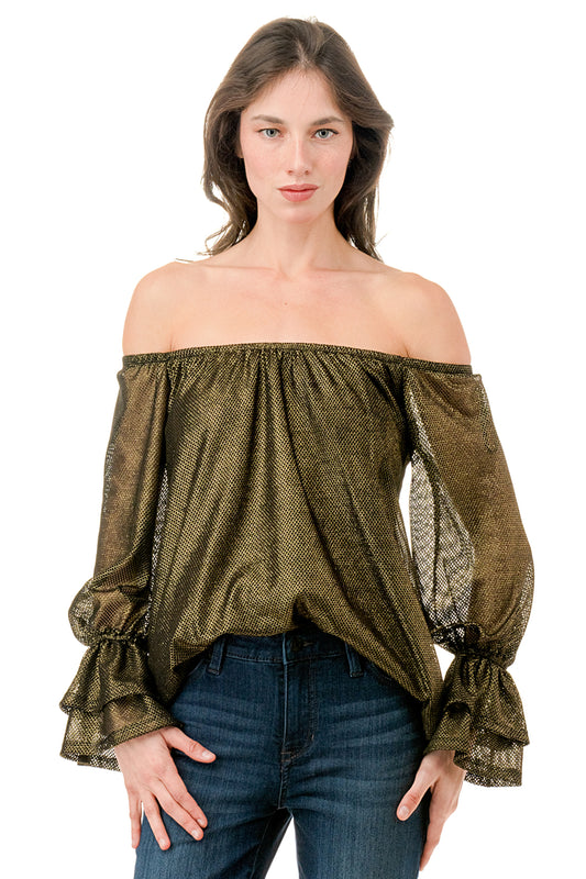 FRANCES OFF SHOULDER TOP (METALLIC MESH)- VT3160