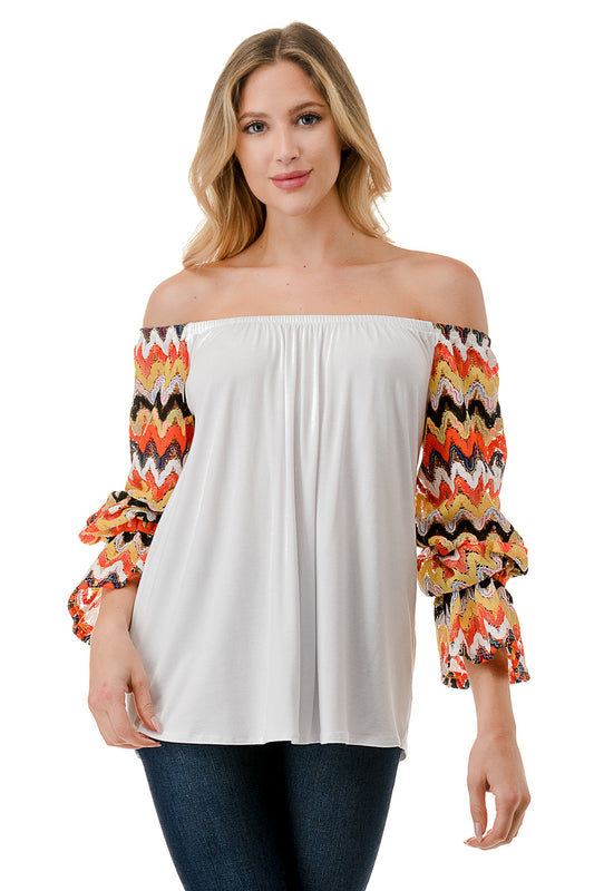 FRANCES OFF SHOULDER TOP (IVORY / ORANGE GREEN WAVE)- VT3160